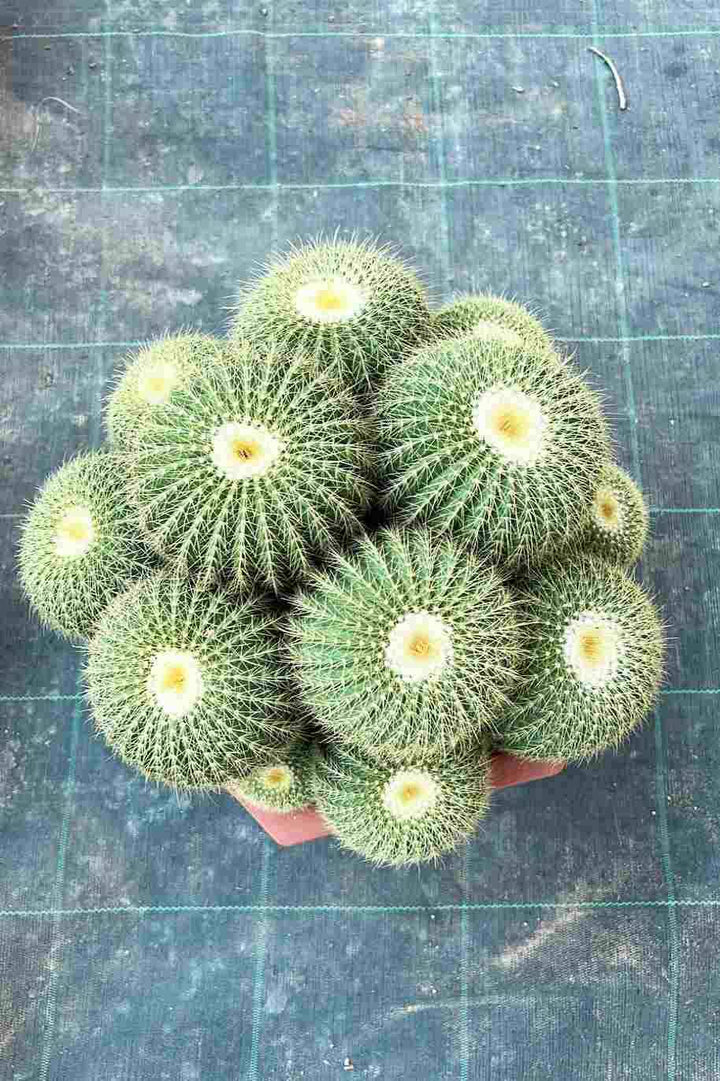 يتميز نبات الإكينوكاكتس، المعروف باسم صبار البرميل، بشكله الدائري أو الأسطواني وسطحه المضلع. عادةً ما يكون الصبار منفردًا، ولكن قد تُنتج بعض الأنواع أغصانًا مُنفصلة، مما يُعطي مظهرًا متعدد الرؤوس. يتميز النبات عادةً بأضلاع بارزة وأشواك حادة، ويمكنه إنتاج أزهار عند التاج في الظروف المناسبة.