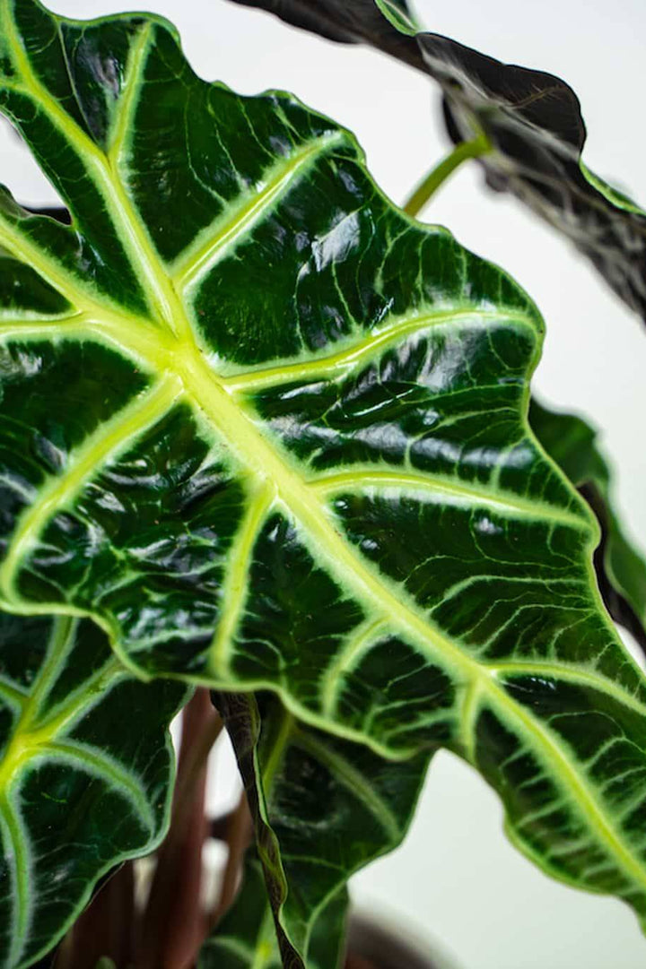 Elephant ears need bright sunlight when grown indoors, but nothing too harsh. If you notice the leaves are looking bleached or singed, move it to a dimmer spot or add a sheer curtain. Elephant ears like to stay consistently moist, but not soggy. Be especially careful with watering if you use a pot without drainage holes. Always test the soil with your finger first. Humidity is also important to elephant ears, so it’s a good idea to set the pot in a saucer of water elevated by pebbles. (The pebbles will prevent the roots from sitting directly in the water, which will cause rotting.) Fertilize elephant ears every two weeks with an all-purpose liquid fertilizer. Stop fertilizing in winter to allow your plant to rest.