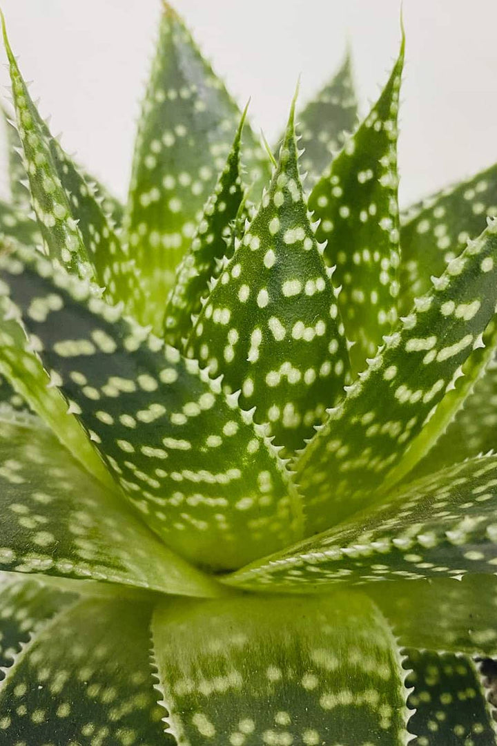 Grown primarily grown for its attractive succulent rosettes of yellow spots on green leaves with soft white spines, Aloe Aristata belongs to the Aristaloe genus of flowering plants native to South Africa. It commonly called the “slippery one.” The stemless plant produces long, soft, succulent leaves with tubular orange flowers. It’s another unique plant deserving proper care.