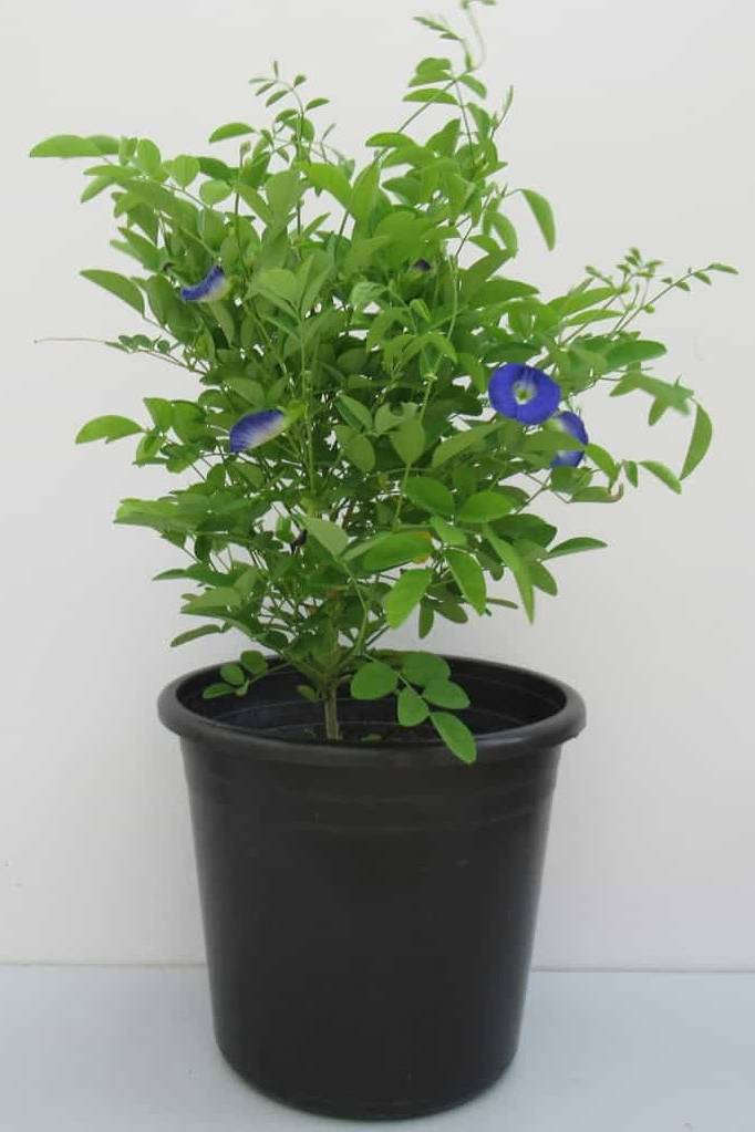A healthy Asian PigeonWings (Clitoria Ternatea) plant in a pot, ready to climb and bloom.