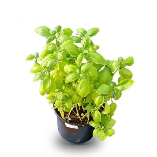 A healthy live Basil Plant (Ocimum basilicum) in a nursery pot