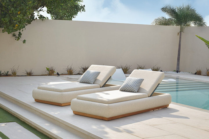 Built with your choice of a sturdy teak wood frame or a durable aluminum frame, it combines timeless aesthetics with robust construction to withstand the elements. Upholstered in all-weather-resistant Sunproof fabric, the Bermuda Sun Lounge offers a plush and luxurious surface for endless comfort.