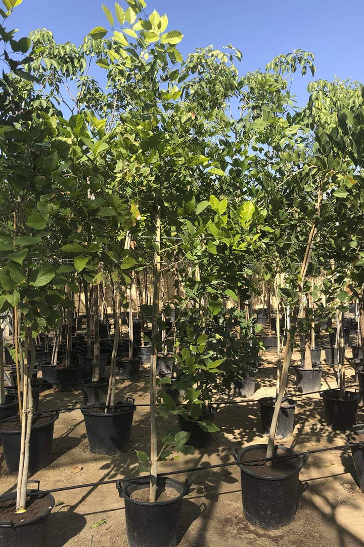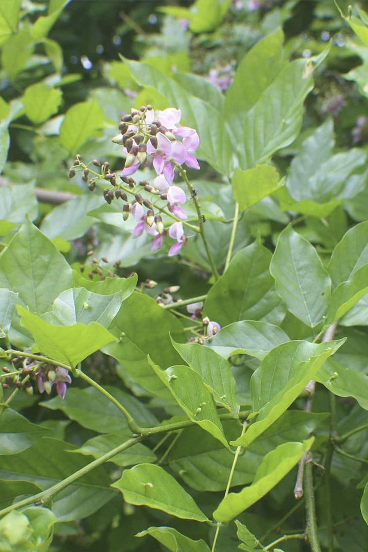 The imparipinnate leaves of the tree alternate and are short-stalked, rounded or cuneate at the base, ovate or oblong along the length, obtuse-acuminate at the apex, and not toothed on the edges. They are a soft, shiny burgundy when young and mature to a glossy, deep green as the season progresses with prominent veins underneath. Flowering generally starts after 3–4 years with small clusters of white, purple, and pink flowers blossoming throughout the year.