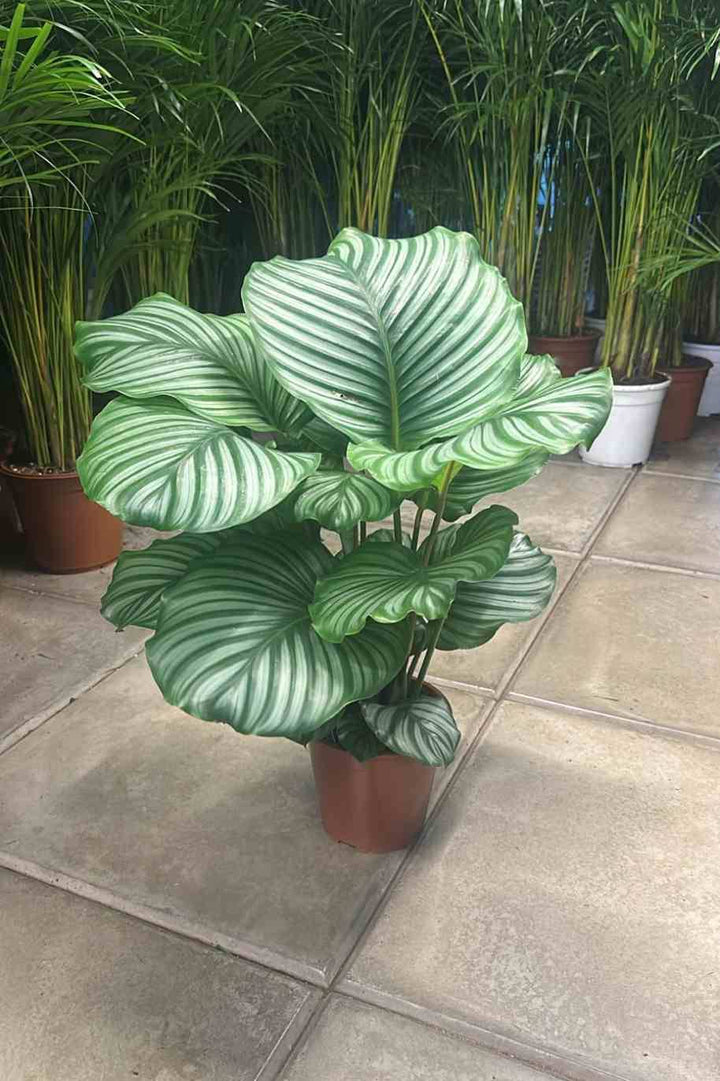 Buy Calathea Orbifolia Large from Plantshop.me and transform your space with one of the most stunning indoor plants available in the UAE. Known for its oversized, round leaves adorned with striking silver-green stripes, the Calathea Orbifolia is a true showstopper for homes and offices alike. This pet-friendly plant is safe for both cats and dogs, making it an excellent choice for families. Its lush foliage not only adds a vibrant tropical touch but also helps purify indoor air, promoting a healthier living environment.
