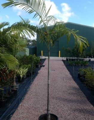 Carpentaria Palm is native to the rain forest areas of Australia’s Northern Territory, where it grows in flat lowland areas near lakes and rivers, and at the heads of saltwater estuaries. : It has a smooth single trunk ringed with old leaf scars that are far apart because of the rapid growth. The Carpentaria Palm produces beautiful green to white flowers all year round.