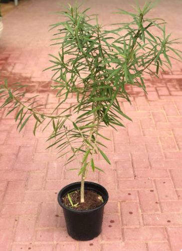 Healthy live Cascabela Thevetia (Yellow Oleander) plant delivered in a pot with premium soil.