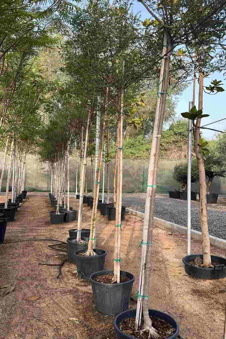 The Chaste Tree (Vitex Agnus Castus) is a graceful outdoor ornamental tree admired for its aromatic foliage, lavender-blue flower spikes, and ability to attract bees and butterflies. Native to the Mediterranean and Western Asia, it thrives beautifully in the UAE’s sunny climate, making it a striking addition to gardens, villas, and landscaped pathways. Its deciduous branches, covered in soft, white-felted leaves, create a textured contrast to its clusters of fragrant flowers that bloom during summer.