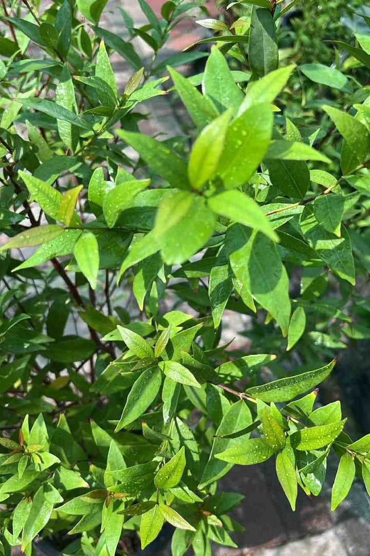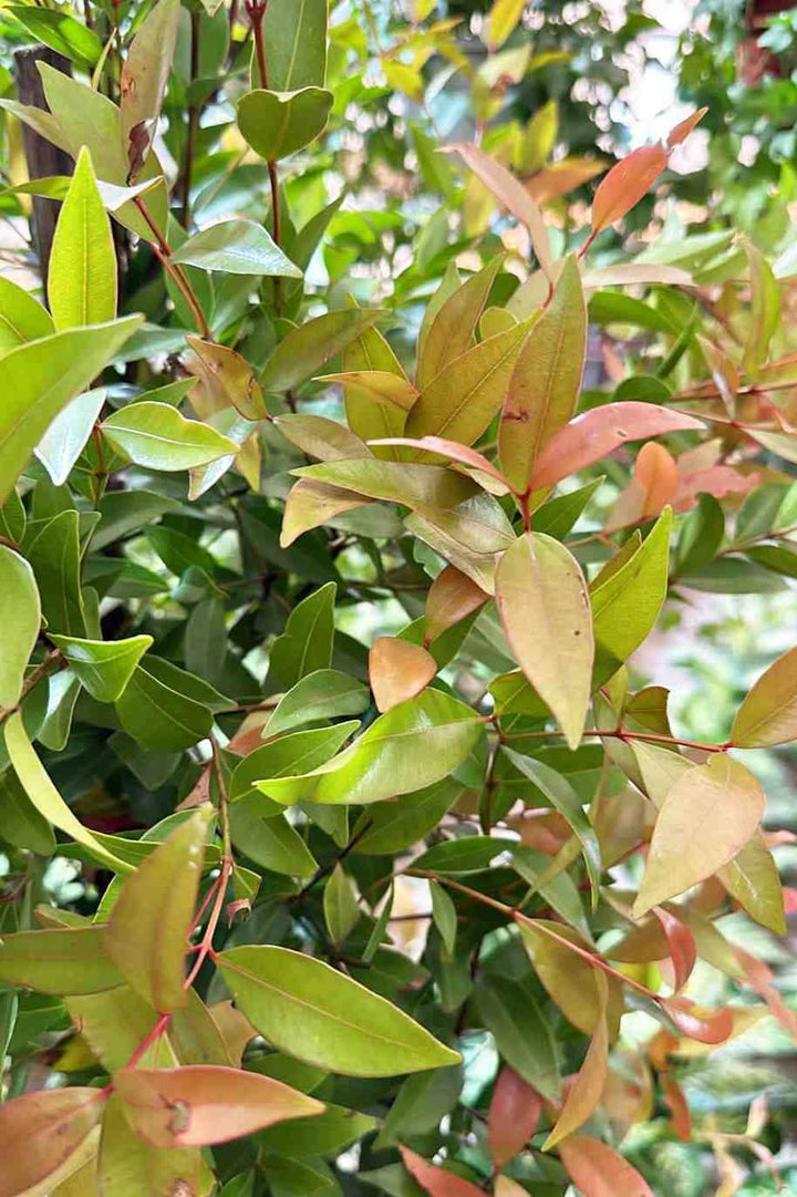 Leaves: The leaves of Syzygium myrtifolium are small, glossy, and elliptical to lance-shaped. They are arranged opposite each other along the stems. The foliage is typically dark green, providing a lush and dense appearance.