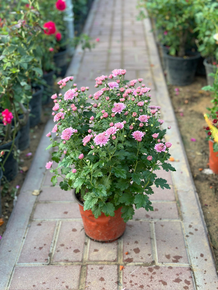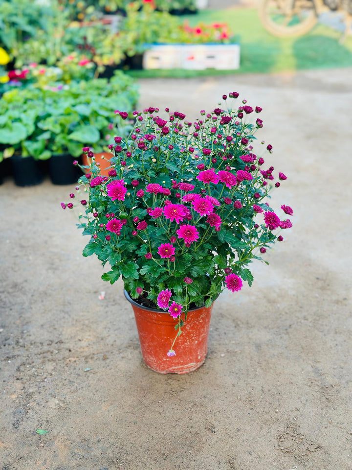 A healthy Chrysanthemum plant, delivered in a pot with premium soil.
