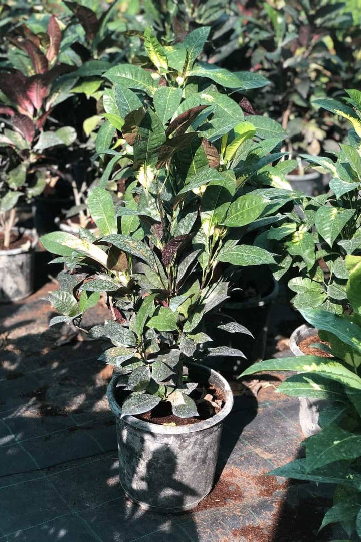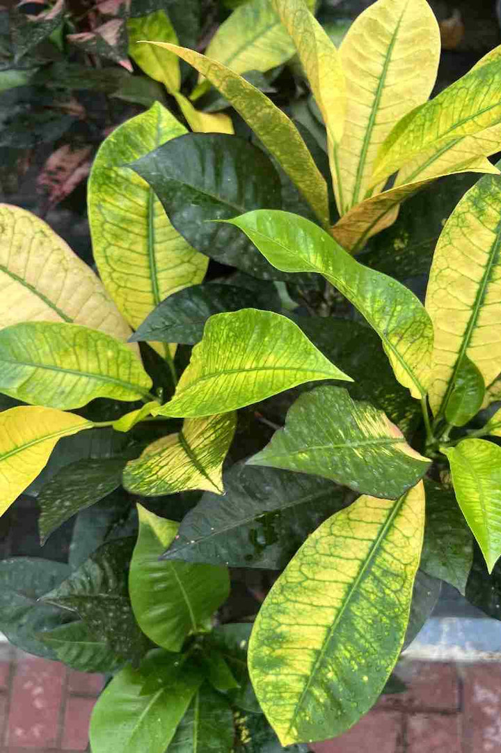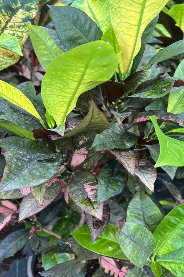Variegated Croton also known as Codiaeum variegated or Garden Croton, is a species of plant in the genus Codiaeum, which is a member of the family Euphorbiaceae. It is native to Indonesia, Malaysia, Australia, and the western Pacific Ocean islands, growing in open forests and scrub. The croton plant is often grown outdoors in tropical climates, but also make excellent houseplants. Crotons come in a wide variety of leaf shapes and colors. Leaves can be short, long, twisted, thin, thick and several of these combined. Colors range from green, variegated, yellow, red, orange, cream, pink and black to a combination of all these. It is safe to say that if you look hard enough, you will find a croton that matches your décor.