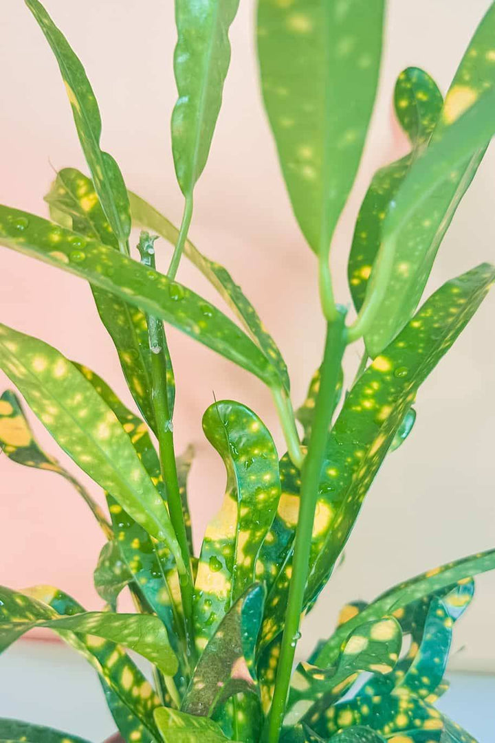 Care tip: Ensure a humid environment by misting the plant occasionally or placing it near a humidifier. Avoid placing it in drafts or direct sunlight to prevent leaf scorch. Bring home the Croton Stardust Small for a touch of celestial beauty!