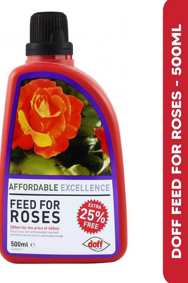 DOFF feed for Roses 500ml Liquid Feed ideal for roses and flowering plants FAST ACTING Promotes lush foliage and healthy blooms. 500ml makes up to 116 litres. Contains NPK - 2 - 2.5 - 4.5 Use march - September