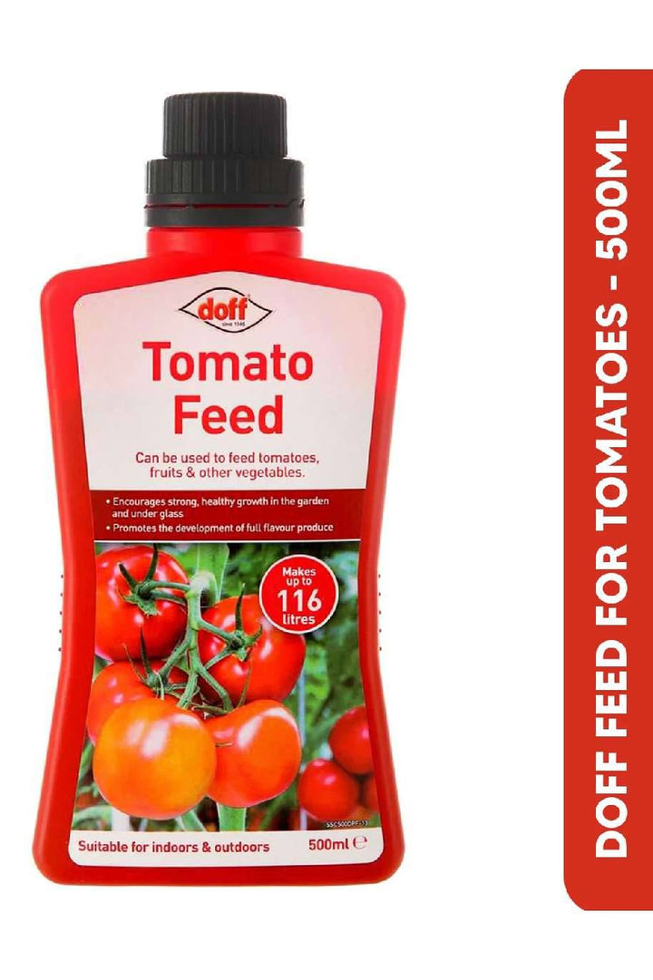 - Plant feed; supplied as 1 x 500ML Doff Tomato Feed Bottle