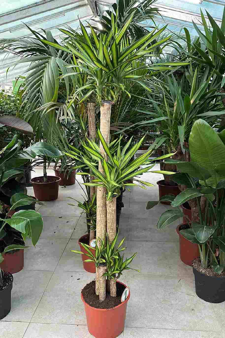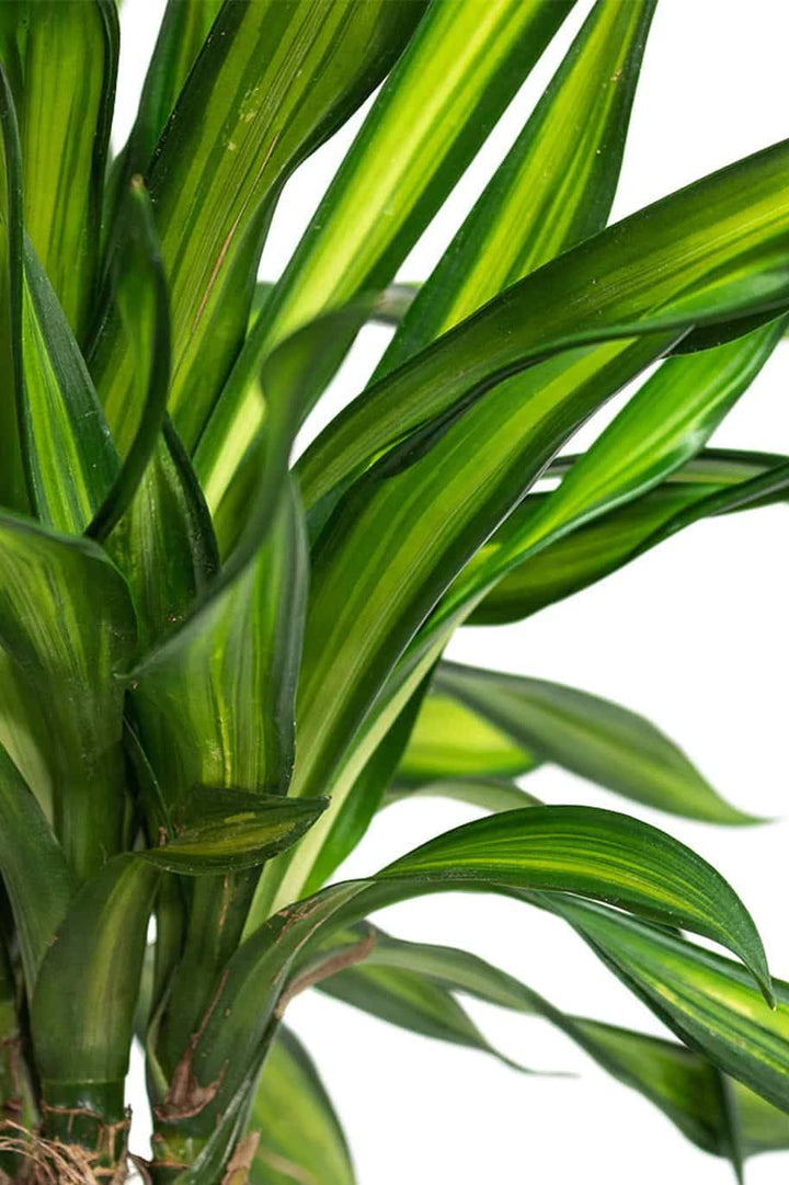 Dracaena Rikki (Dracaena deremenis “Rikki”) also know as Corn Plant, is a relatively new type of dracaena recognized by arching, deep green leaves, each marked with a yellow stripe running lengthwise down the center of the leaves. Corn plants produce leaves that look similar to corn leaves but remain green year-round. Although they are primarily grown for their foliage, they also produce yellow-white blooms when properly cared for.