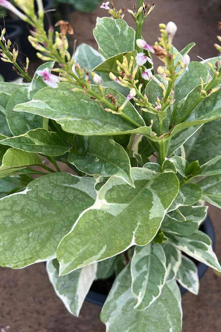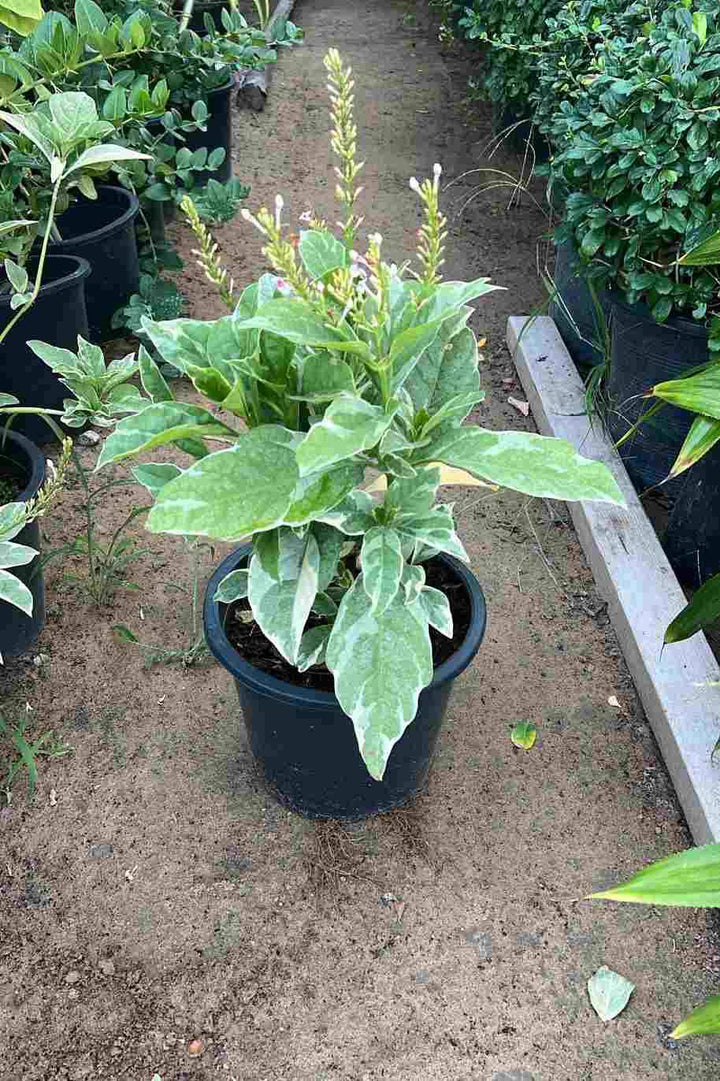 Foliage: Eranthemum plants typically have glossy, ovate to lance-shaped leaves that may feature variegation. In the case of a "White Variegated" variety, the leaves would display white variegation, often in the form of stripes, spots, or marbling, against a green background.
