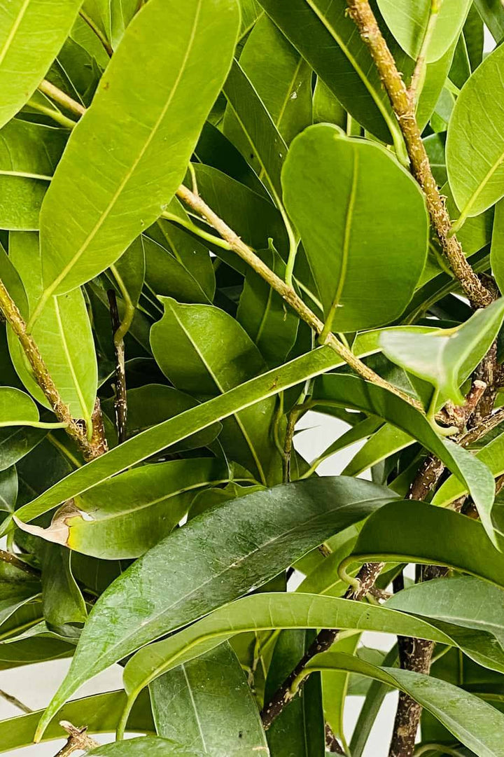 Ficus Alii plants do well in bright indirect light; however, they can survive in medium light. The lower the light level, the longer a Ficus Alii takes to produce new leaves. Rotate weekly to maintain the plant's beautiful shape. Water a Ficus Alii when the top 1 inch of the soil has dried out. Water well so that excess water drains out the drip holes in the bottom of the pot. Immediately empty excess water and do not allow a Ficus Alii to sit in water. New growth turns black and green leaves fall off from over-watering. Leaves become brown and crunchy, drop off, and may turn yellow when the plant needs water. Feed monthly with a well-balanced liquid fertilizer when the plant is actively growing. Use a good, all purpose, well- aerated potting soil. Ficus Alii plants are Poisonous Houseplants with a level #2 toxicity. The sap contains latex that can cause skin irritations. Always wear gloves when pruning.