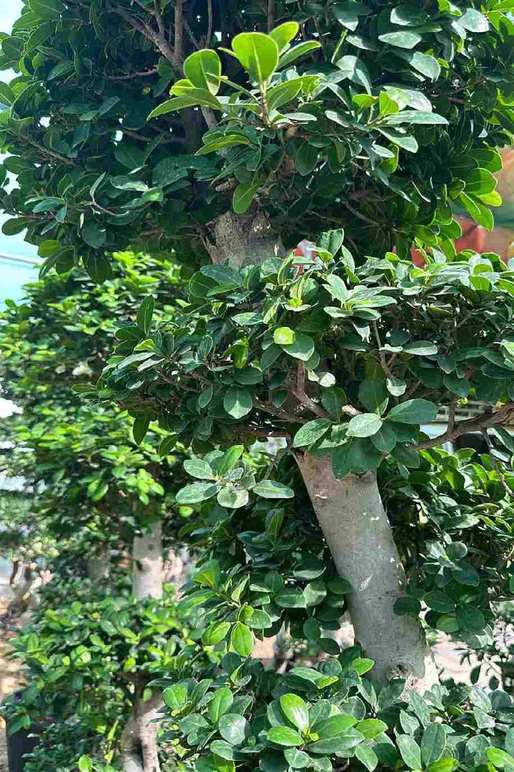 Trunk and Bark: The trunk of a Ficus bonsai is often thick and gnarled, with a smooth, grey bark. Larger bonsai trees may have impressive aerial roots that descend from the branches to the soil, giving the tree a dramatic and aged appearance.