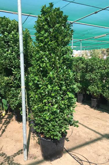 Foliage: Ficus Panda is characterized by its glossy, dark green, oval-shaped leaves that are densely packed along the branches, creating a lush canopy. The foliage tends to be more compact and tightly clustered compared to other Ficus microcarpa varieties, giving the tree a distinctive appearance. The leaves may have a slightly waxy texture and are typically 1 to 2 inches (2.5 to 5 centimeters) long.