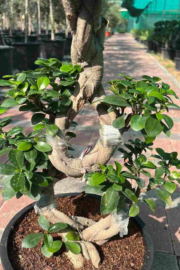 Growth Habit: As a bonsai, Ficus retusa is manipulated through pruning, wiring, and training to achieve the desired shape and size. The eight-shaped design is one of the many styles employed in bonsai cultivation.