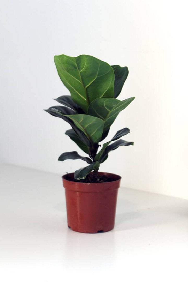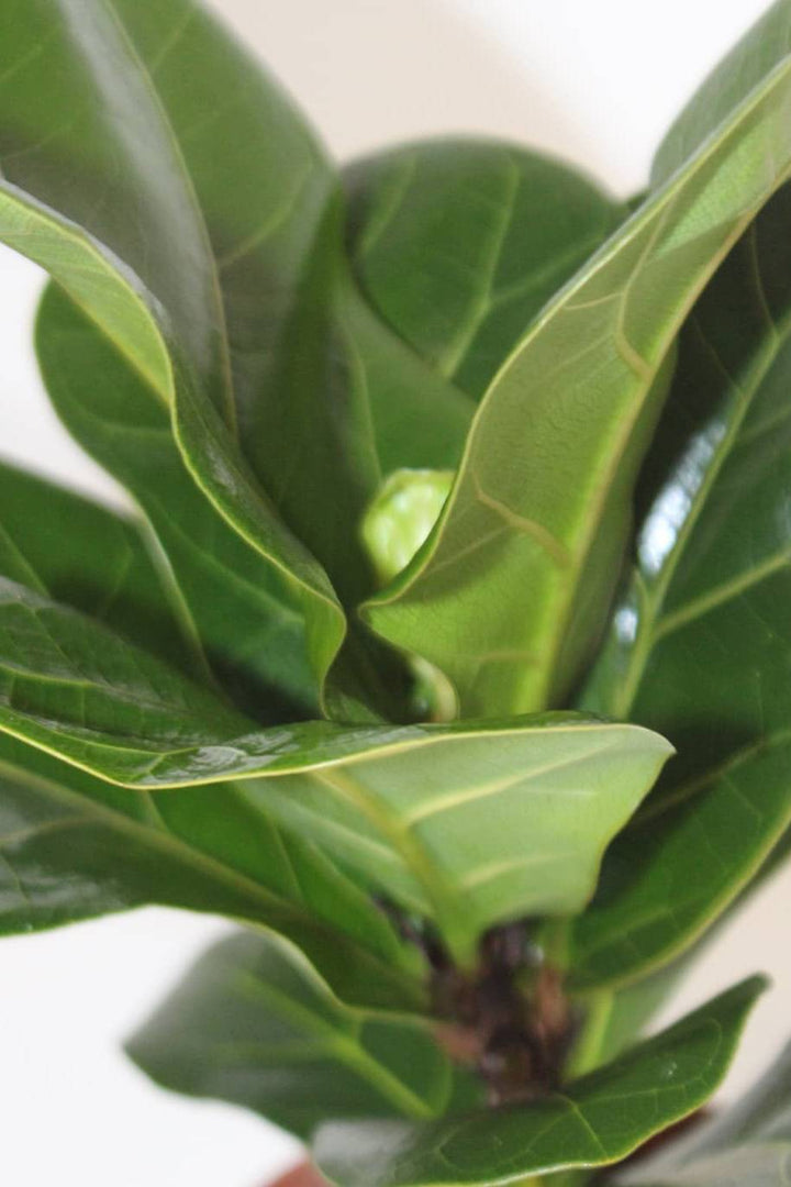 The Fiddle Leaf Fig appreciates a warm, humid environment, a fair amount of water and plenty of light. Choose a location away from air vents and drafts where the tree will receive plenty of bright ambient light. The Fiddle Leaf Fig likes its soil to be kept consistently evenly moist, with a brief drying out period between waterings, as it comes from an area of the world that gets very dry between rain. Water it thoroughly whenever the top 2” of soil have dried. Allowing the soil to dry more than a few inches will lead to leaf loss, so be sure to check in with the soil regularly until you develop a routine with your plant. In contrast, too much moisture in the soil can lead to root rot and also cause leaves to drop. Rotate your tree once a month to keep it standing straight and tall. Fiddle Leaf Figs, in particular, like to reach towards the light, so if you don’t rotate you’ll notice them bending over time.