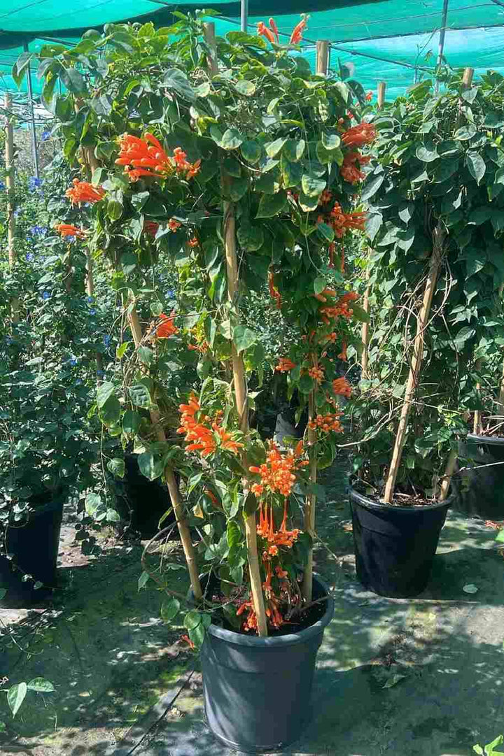 Flowers: Flame Vine produces masses of vibrant, tubular, orange flowers that resemble trumpets. These flowers are borne in clusters and create a spectacular display, especially in the fall and winter seasons.