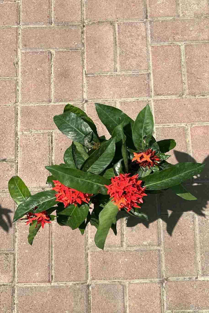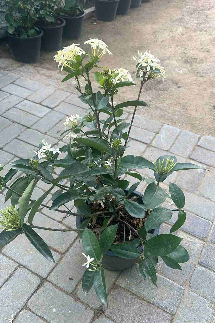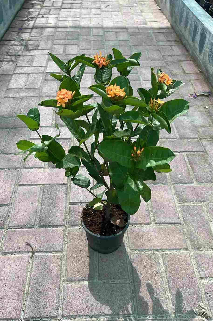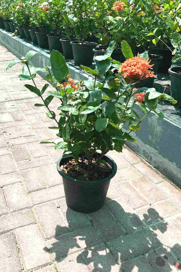 A healthy Ixora Coccinea plant in a pot, ready to enhance your garden.