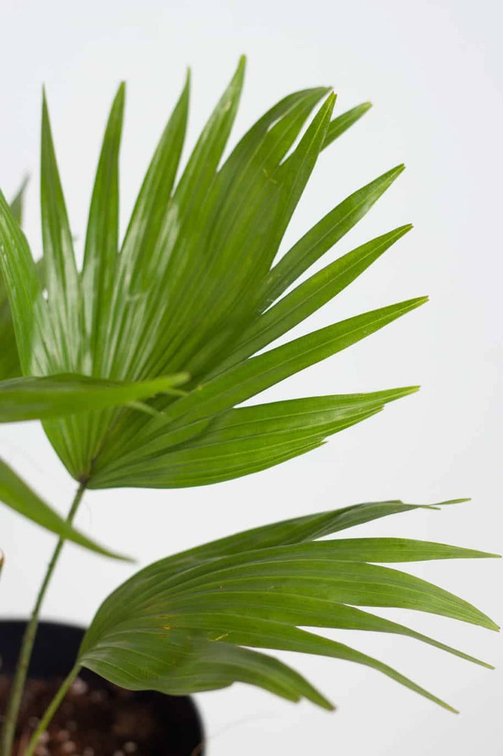 This very decorative oriental fan palm is easily cared for. As a house plant, it has a really exotic look about it! Stand it prominently in your living room. Livistona rotundifolia can be easily grown indoors. The leaf stalks are, as many other palms, slightly spiked and divided. Livistona originated in the tropical rain forests and open woodlands of Asia and Australia where it is often in the shade. It can become a fairly large plant that does well in full sun too.In the tropics, the large round fan-shaped leaves of this decorative palm tree can easily reach two meters across and long.