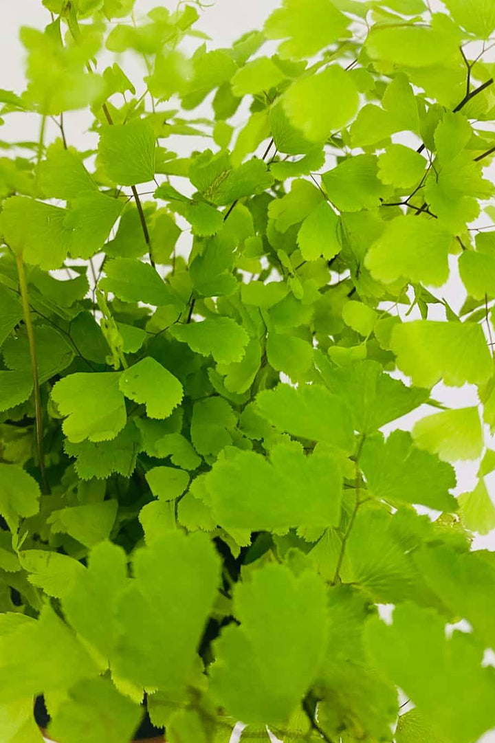 Maidenhair ferns need shady settings. Do not expose them to any direct sunlight, and especially avoid bright light. This plant requires humid warm air. It will die or wilt with dry, hot air. To achieve the right watering conditions, mist the plant with warm water a couple of times a day. This will maintain moisture on the leaves. Additionally, keep the soil damp but not soggy. A humidifier or pebble tray can maintain optimal indoor growing conditions. Many growers have success keeping these plants in a shady corner or under a plant bench in glassed-in solariums or sunrooms. Since maidenhair ferns thrive on moisture, it's recommended to plant it in a pot with drainage holes. Ideally, keep the fern in a plastic pot with holes, and then put the plastic pot in a more attractive outer pot. This will allow you to easily check the moisture levels in the plastic pot. The drainage holes should prevent the soil from becoming soggy. If you choose to fertilize your fern, do so with weak liquid fertilizer twice a week, only during the growing season and not in the winter months.