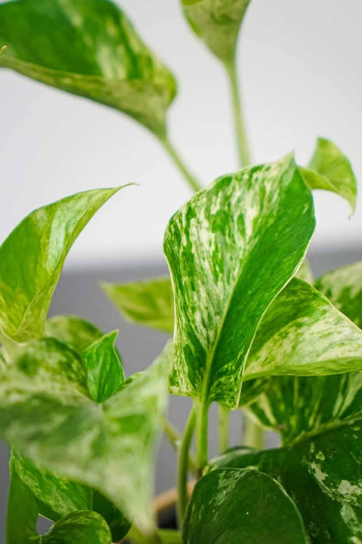 How to care for the ‘Marble Queen’ pothos: The Epipremnum aureum (Devil’s ivy) variegated plant thrives when grown in bright, indirect light and soil with excellent drainage. The conditions for growth are a temperature range between 65°F and 75°F (18°C – 23°C), high humidity, slightly moist soil, and fertilizing monthly during the growing season.