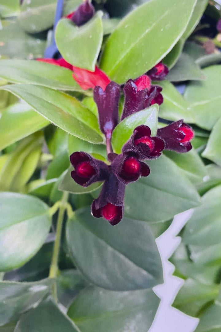 Commonly called the Lipstick plant because of the tubular scarlet flowers, which are held near the tips of the trailing stems by a darker sheath-like calyx. This eye-catching plant looks great cascading over the edges of the pot - even when not in bloom! Easy-care Lipstick Plant is ideal for a hanging basket. Putting it at eye-level will show off its thickly leaved trailing vines with spectacular flowers.