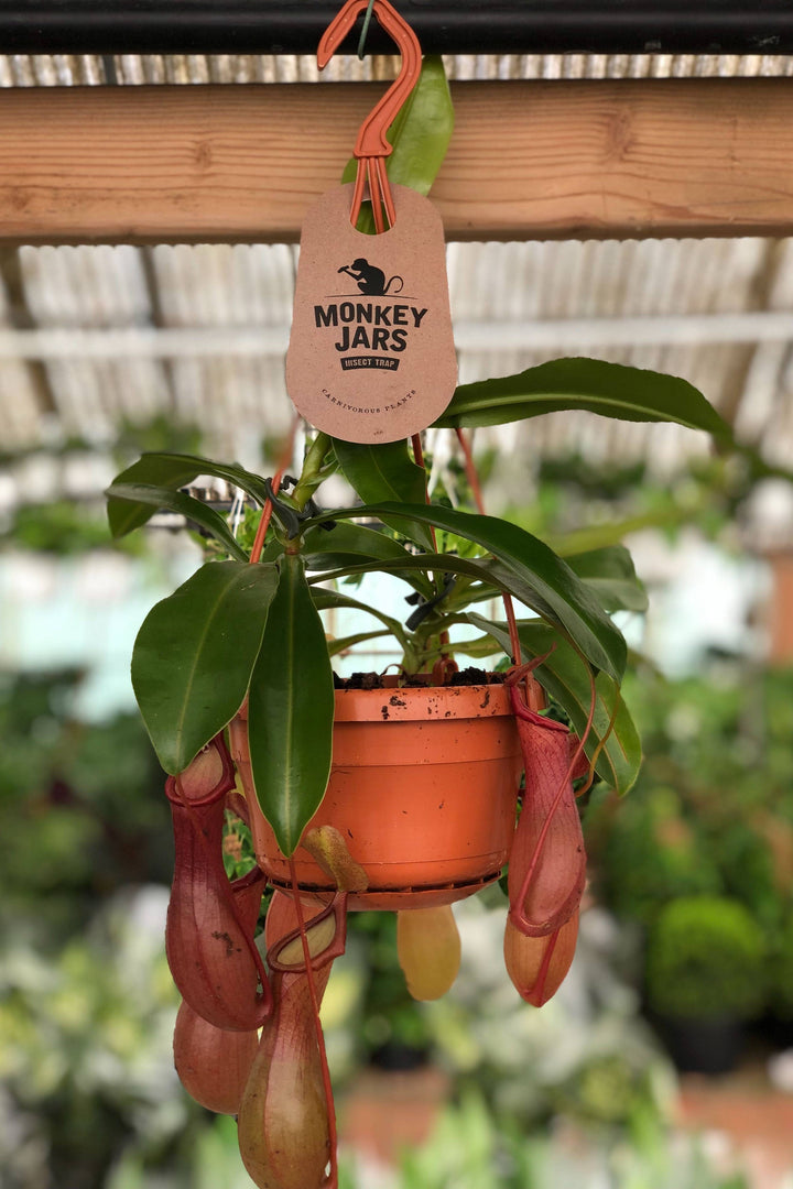 Monkey Jars are officially known as Nepenthes. While you’ve probably never heard of this genus, you’ve undoubtedly heard of carnivorous plants. Well, that’s exactly what Nepenthes is. These climbing plants grow in tropical rainforests like those found in Borneo. They can easily grow up to fifteen metres high. (Don’t worry, you won’t have to re-roof your house when you buy our Monkey Jars!)