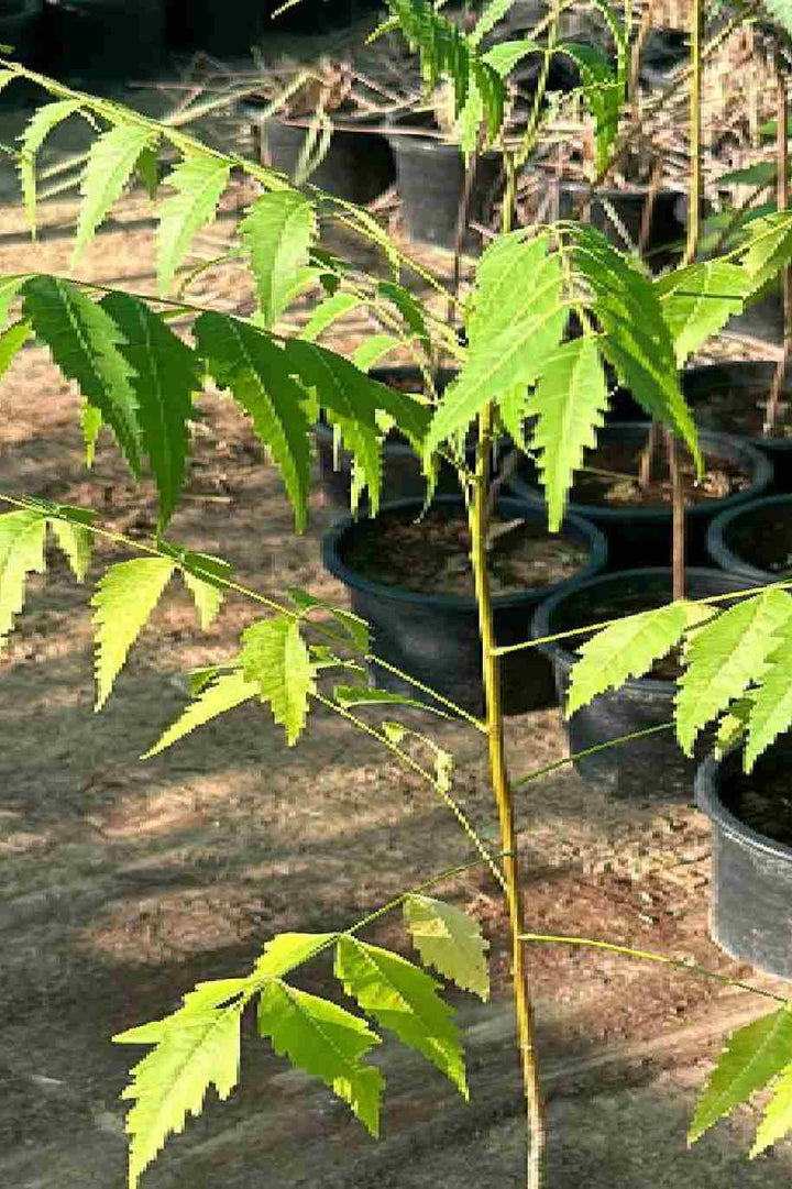 Leaves: Neem trees have pinnately compound leaves, typically featuring 10 to 31 leaflets. The leaves are dark green, serrated, and have a distinctive, slightly bitter aroma when crushed.