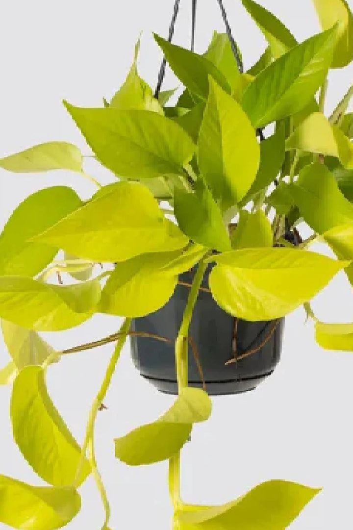 Neon Pothos is able to adapt to lower light but thrives in bright, indirect light year-round. Harsh, direct sunlight will scorch the leaves, while too little light will cause the leaves to become a pale green and smaller in size. Water Pothos enough to keep the soil moist, but not wet or saturated. It’s best to water when the top inch of the soil is dry. Don’t worry if you forget—it will occasionally tolerate a missed watering! Look out for drooping yellow leaves, they are a symptom of too much water.