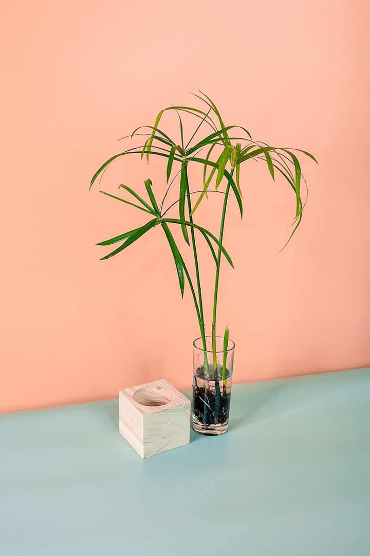 Comes in wooden base and cylindrical glass vase