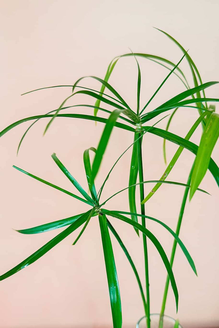 Paper Reeds are rhizomatous and aquatic plants with triangular section stems that reach 5 meters in height. The leaves appear in tufts at the end of the stems and are long, thin and jade green. The flowers appear in brown spikes.