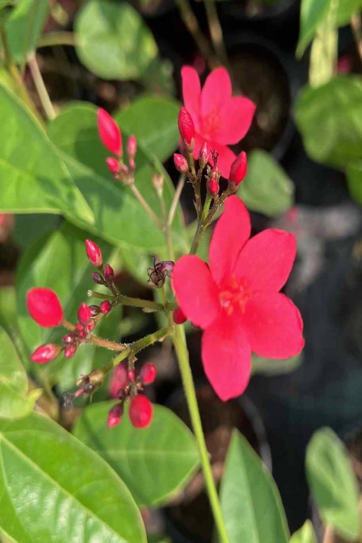 Jatropha is a member of the Euphorbia or spurge family (Euphorbiaceae) and contains a milky sap that can irritate sensitive skin. All parts of the plant are reported to be poisonous if ingested.