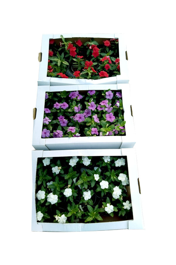 Periwinkle (Vinca) - Catharanthus Roseus is a popular and highly valued outdoor flowering plant known for its abundant, colorful blooms and glossy green foliage. This resilient subshrub produces stunning flowers that range from white to dark pink with a darker red center, offering a vibrant splash of color throughout the growing season. Periwinkle is a perfect addition to any garden, balcony, or patio in the UAE and KSA.