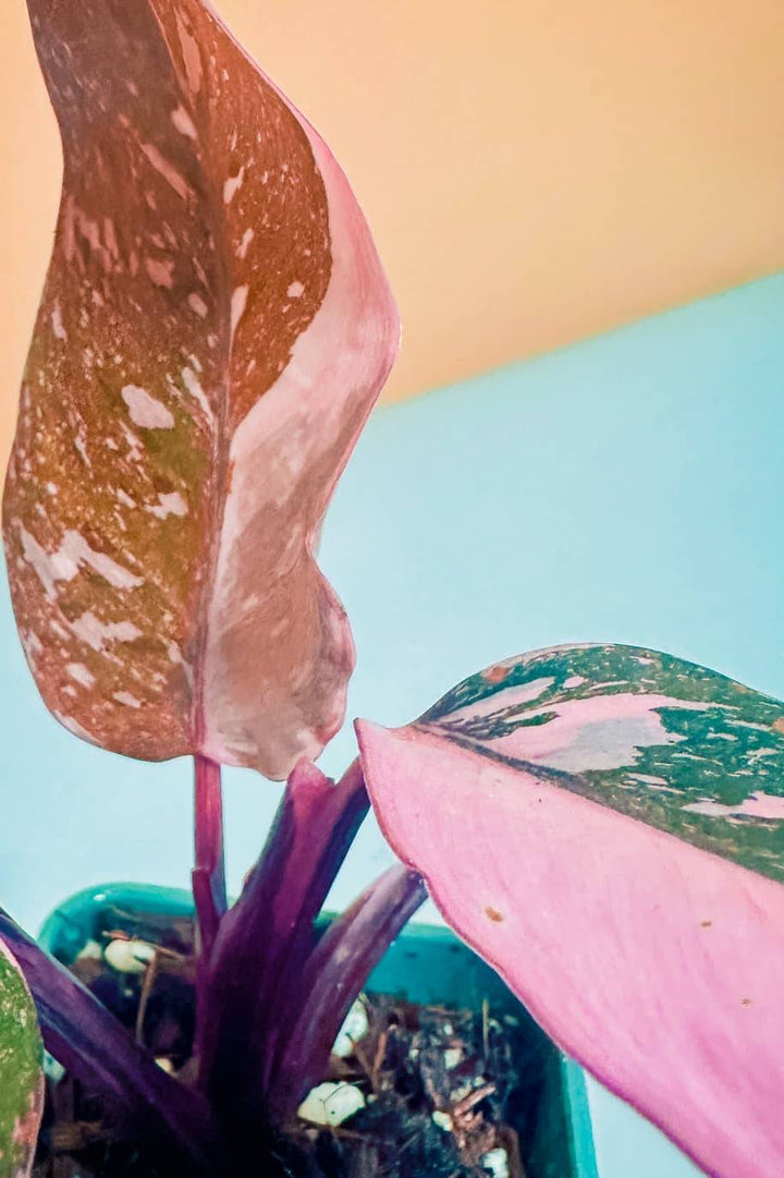 This plant has a smaller root system than most, therefore we do not recommend you pot into a bigger sized pot this season. If you have a fully pink leaf, it is best to remove it, as it will not survive.