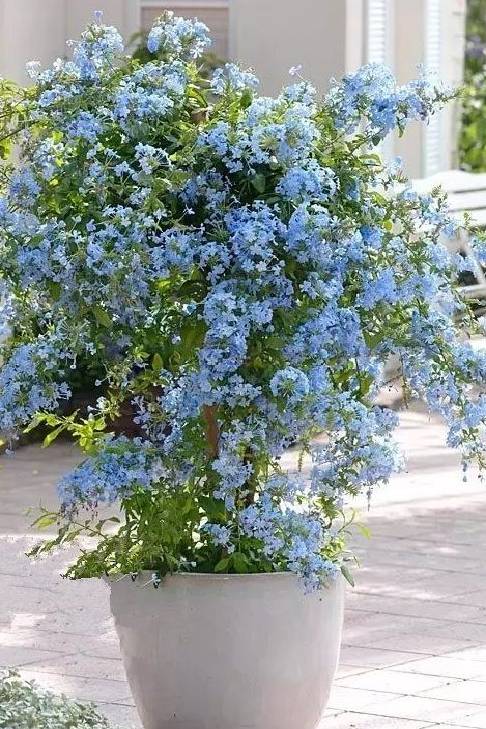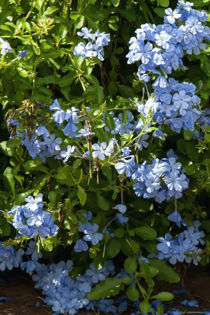 Growth Habit: Plumbago has a sprawling growth habit, typically reaching heights of 6 to 10 feet (1.8 to 3 meters) and similar spreads. It can be trained as a climber or grown as a shrub, and it's often used as a hedge or in containers.