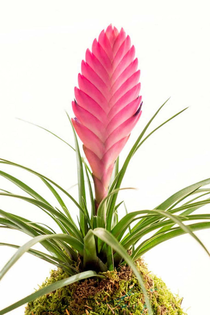 The Tillandsia Rosa is the perfect detail. It is famous for its long, arching leaves and deep pink flower. The kokedama gives it an extra touch of exoticism. We love it both as a table centrepiece and on a shelf.