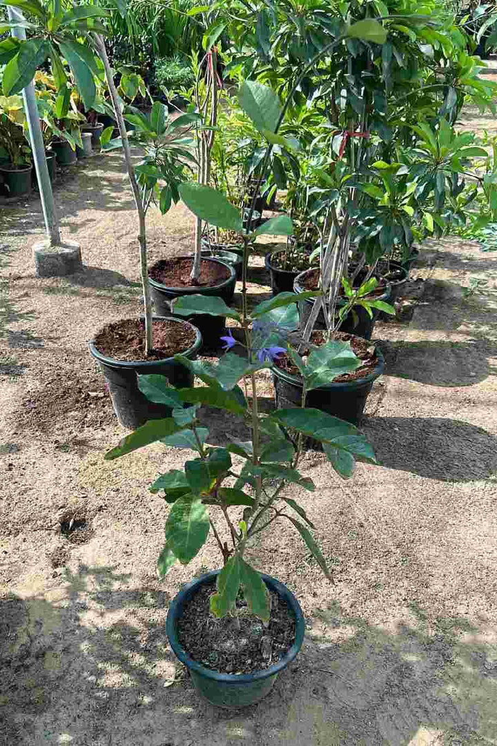 The Sandpaper Vine is an absolutely gorgeous tropical vine when in full bloom. It blooms heavily in the spring, but blooms again a few times during the warmer months, older plants bloom more. Although the flowers are short-lived, the secret to their beauty lies in the long-lasting petal-like, violet calyces that persist even after the flowers have fallen. The vine’s rough-textured leaves resemble sandpaper, giving it the common name.