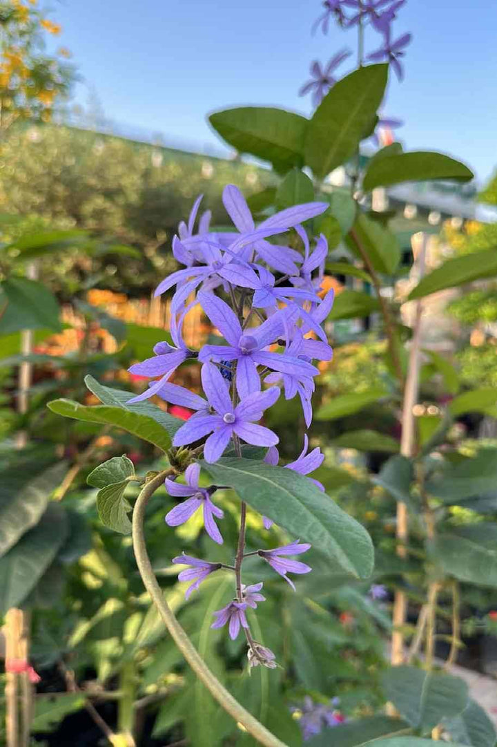 Petrea Volubilis is a genus of evergreen flowering vines native to tropical Americas, that is valued especially for its display of violet flowers. It is considered to be somewhat drought resistant once well-established but will have the best foliage and likely produce the most flowers under average moisture conditions.