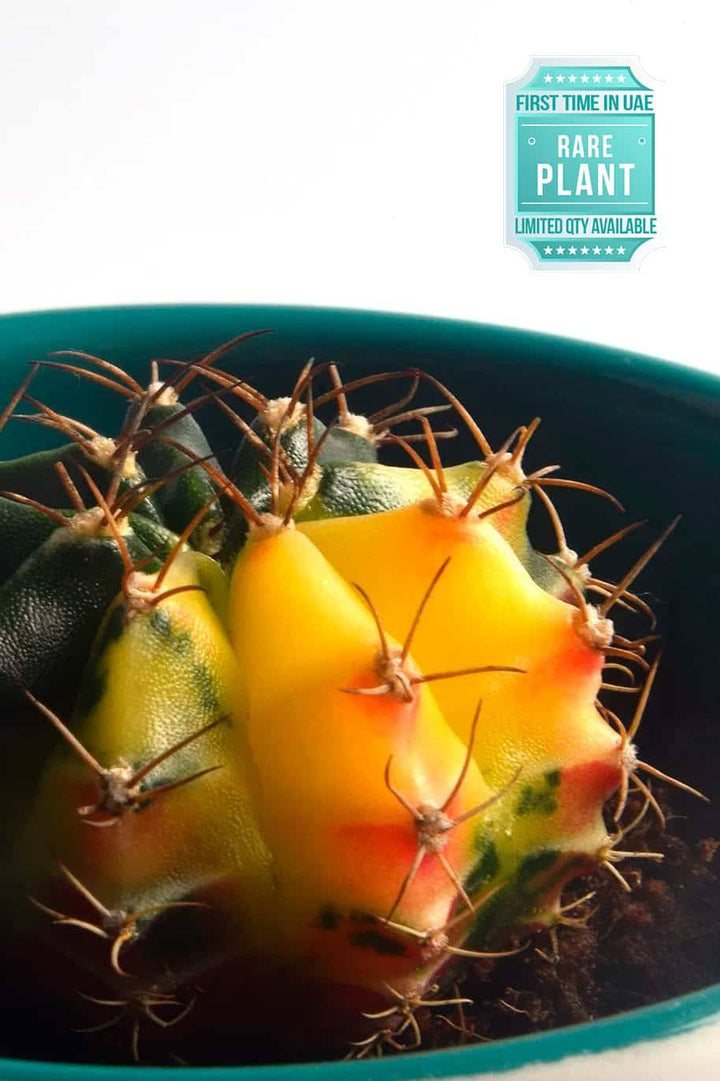 Gymnocalycium mihanovichii f. variegata is a rarely offered, stunning cactus with red and yellow variegation! Commonly known as ‘moon cactus’, this dwarf cactus reaches only about five centimeters in size. Due to its unique variegation, each one of these cacti is one of a kind!
