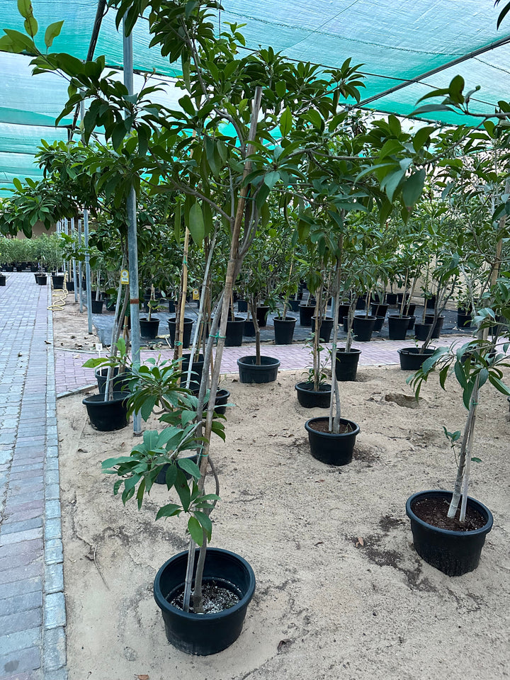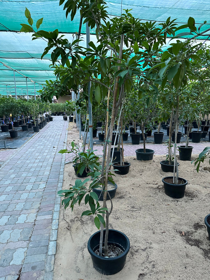 The Sapodilla is one handsome tree with a ton of benefits. From its long, glossy green leaves to the attractive oval fruit that hangs like large brown eggs. It is a slow-growing evergreen tree with a long lifespan. The bell-shaped flowers bloom several times a year, adding a colorful burst of pinks and reds that complement the sea of green throughout the tree.
