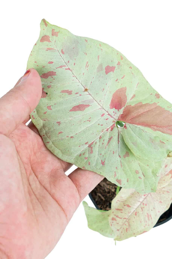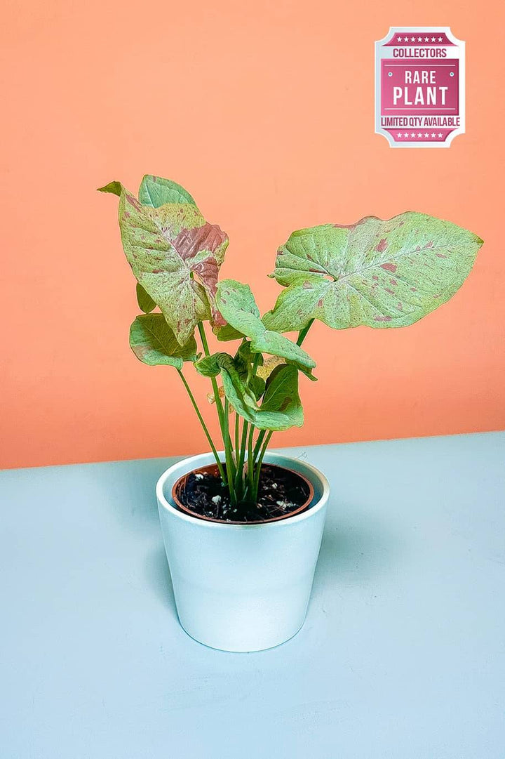 Syngonium Podophyllum Milk Confetti also known as arrowhead plant is a desirable aroid that boast arrow-shaped leaves and beautiful green to pink variegation. Syngonium is a considered a fast growing climber from the Aracae family.