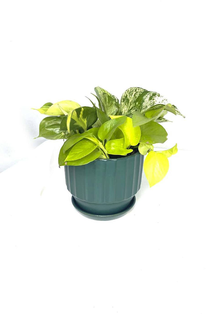 Beautiful arrangement of three plant varieties in premium pot including - Marble Queen, Neon Pothos & Philodendron Brasil.