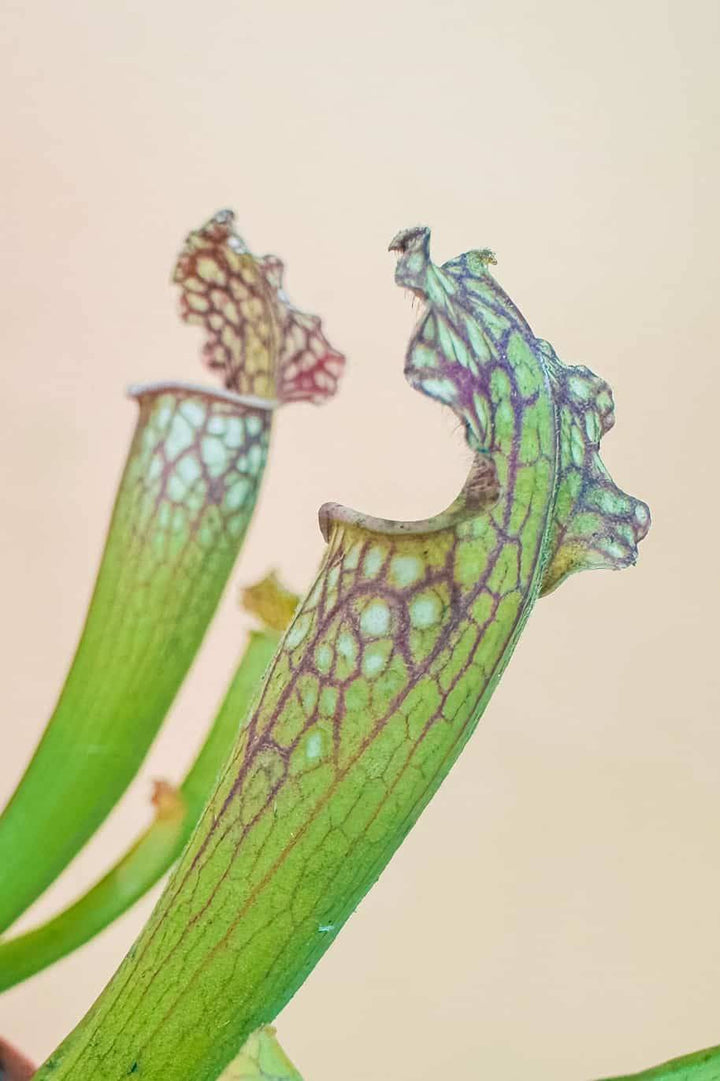 Trumpet Pitcher carnivorous plant native to subtropical wetlands on the East Coast of the United States in North Carolina and South Carolina. It catches it's prey—chiefly insects and arachnids—with a trapping structure formed by the terminal portion of each of the plant's leaves, which is triggered by tiny hairs (called "trigger hairs" or "sensitive hairs") on their inner surfaces.