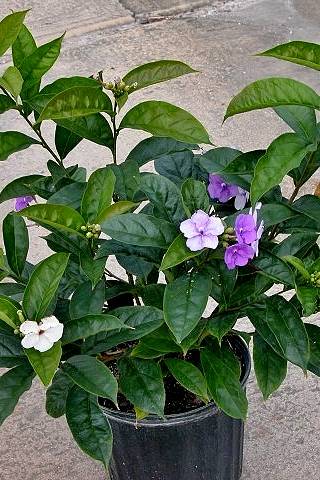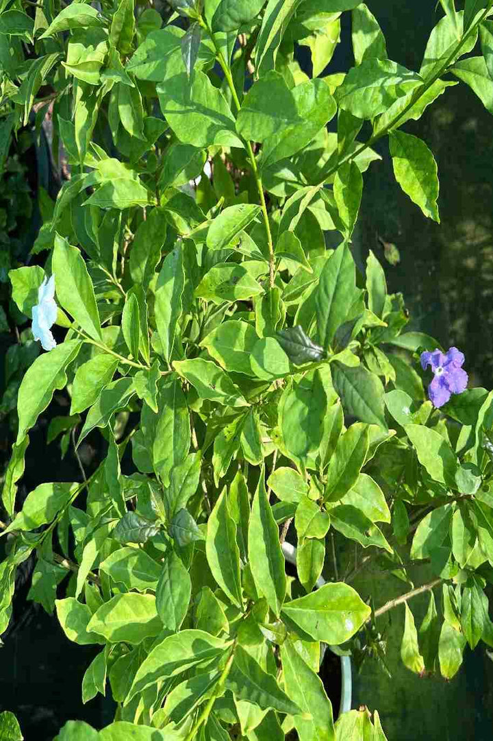 Compatible plants include Hibiscus, Plumbago, and Gardenia—all of which enjoy similar care and sunlight preferences. To keep your Yesterday Today and Tomorrow blooming beautifully, fertilize every few months with a balanced fertilizer and mulch around the base to retain moisture.